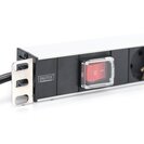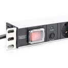 • 483 mm (19“)-Profilschienen sind in der Tiefe verstellbar und mit Markierung der Höheneinheit versehen